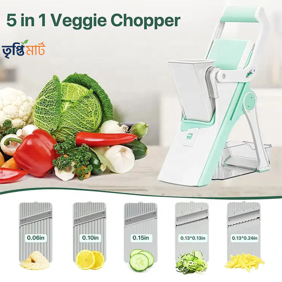 উত্তর: জি, এটি দিয়ে আলু, গাজর, মিষ্টি কুমড়া, শসা, পেঁয়াজ—সব ধরনের সবজি অনায়াসেই কাটা যাবে।
